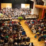 Am Samstag, dem 20. April, feierte die Musikschule Überetsch und Mittleres Etschtal ihren bedeutenden Geburtstag mit einem offiziellen Festakt im Kultursaal von Eppan. Zahlreiche hochrangige Gäste wie Landesrat für Kultur Philipp Achammer, Landesmusikschuldirektorin Alexandra Pedrotti,  Schulamtsleiterin Sigrun Falkensteiner, sämtliche Bürgermeister und Gemeindevertreter aus dem Einzugsgebiet, die ehemalige Direktoren Konrad Ellemunter und Armand Mair, sowie Vertreter unserer Partnerschulen Peter Heiler aus Bregenz und Irmela Werner aus Bannewitz und andere Persönlichkeiten aus Kultur und Vereinen folgten der Einladung. Die Veranstaltung wurde gekonnt von Thomas Vonmetz moderiert, der die einzelnen Teilnehmer in lockeren und kurzweiligen Gesprächsrunden interviewte. Die Hauptrolle übernahmen aber die fast 200 Musikschülerinnen und -schüler, die die Bühne besetzten und die eigens für sie komponierten Stücke von Robert Neumair, Thomas Mahlknecht, Johann Finatzer, Tobias Psaier, Daniel Pupp und Franco Puliafito unter dem Motto „Danke“ in musikalische Magie verwandelten. Das Orchester und die Ensembles wurden von Hans Pircher und Hans Finatzer geleitet und setzten die Uraufführungen in ein buntes Klangmeer um, welches alle Instrumentengattungen von Gesang, Blockflöte, Gitarre, Zupfinstrumente, Streicher, Holz-und Blechbläser und das Schlagwerk mit einschloss. Ein weiterer Höhepunkt war die Präsentation der Festschrift zum Jubiläum, die durch aufwendige Recherchen vom Redaktionsteam unter der Leitung von Publizistin Sibylle Finatzer erstellt wurde und die spannende Geschichte der Musikschule seit ihrer Gründung im Jahr 1973 mit teils unveröffentlichten Aufnahmen authentisch nachzeichnet. Die Matinee endete mit einem kulinarischen Empfang im Foyer des Kultursaals von Eppan, wo noch lange über den gelungenen Auftritt geplaudert wurde. Abschließend möchten wir dem gesamten Team unserer 4 Musikschulen, den zahlreichen Arbeitsgruppen zum Jubiläum in Kaltern, Eppan, Terlan und Mölten, dem Bauhof Eppan, der Hausmeisterin des Kultursaales Frau Giuliana, dem Fotografen Erwin Flor, dem gesamten Personal der Mensaküche, der Gemeindegärtnerei Eppan, den Kellereien Kaltern, Brigl, St. Pauls, St.Michael und Terlan, sowie den Raiffeisenkassen Etschtal und Überetsch für die wertvolle Unterstützung und ihren Einsatz herzlich danken. Fotos: Erwin Flor